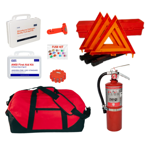 Personal or commercial, a vehicle should comply with federal transportation requirements, and emergency kits are no exception. Compact and with all basic emergency signaling devices, our DOT-compliant car kits meet or exceed all FMVSS 125 and CFR 49 requirements. All large trucks, Vans on the highway, and many other vehicles, are required to have these items.