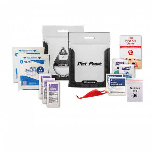 This kit is ideal for a short stay outdoor trek, camping trip, back packing, hiking and general home use. Loaded with practical first aid items that will help sooth even the season outdoors adventurers. We also put our patented tick tool in the kit as well so you can safely remove a tick if necessary. Imprint colors in black or white only.