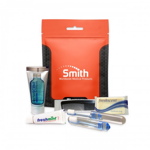 This bag contains a variety of personal Travel Items, suitable for disaster relief. This Hygiene kit is perfect for the homeless, Red Cross Shelter, temporary disaster relief.