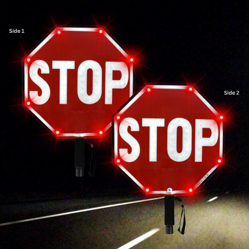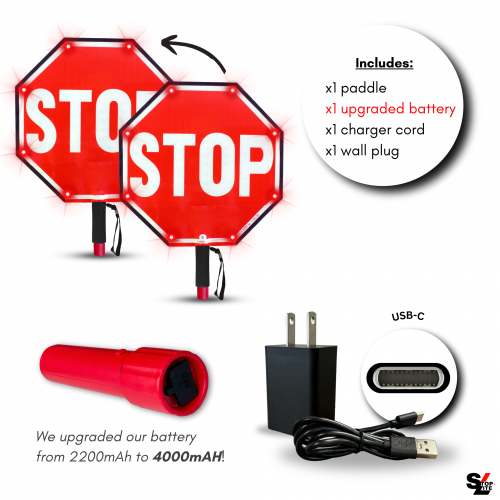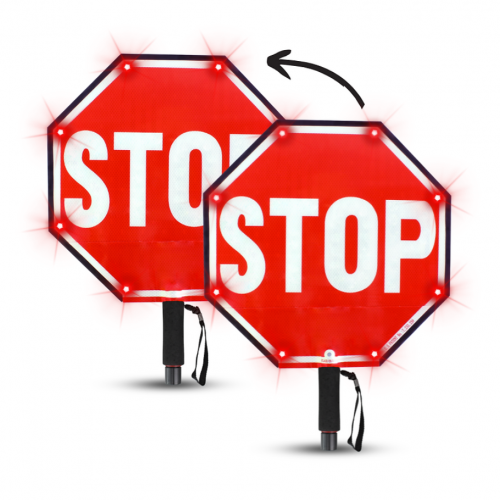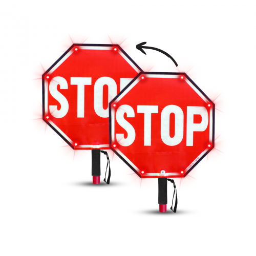 Introducing our 18" Stop-Lite LED Paddle 2.0, the newest version of our best-selling paddle with a red illuminated border on both sides. This is the medium size paddle in our collection and features MS1812 ENG Grade reflective sheeting on both sides.
